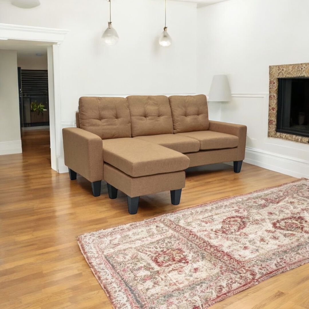 Modern L- Shap sofa upgrade your living room elegant sofa,perfect blend and comfortable style, Made by high quality fabrics and solid wooden legs ,This sofa perfectly fit into come dubai home , ideal for relaxing and watching TV aslo perfect for welcoming guests